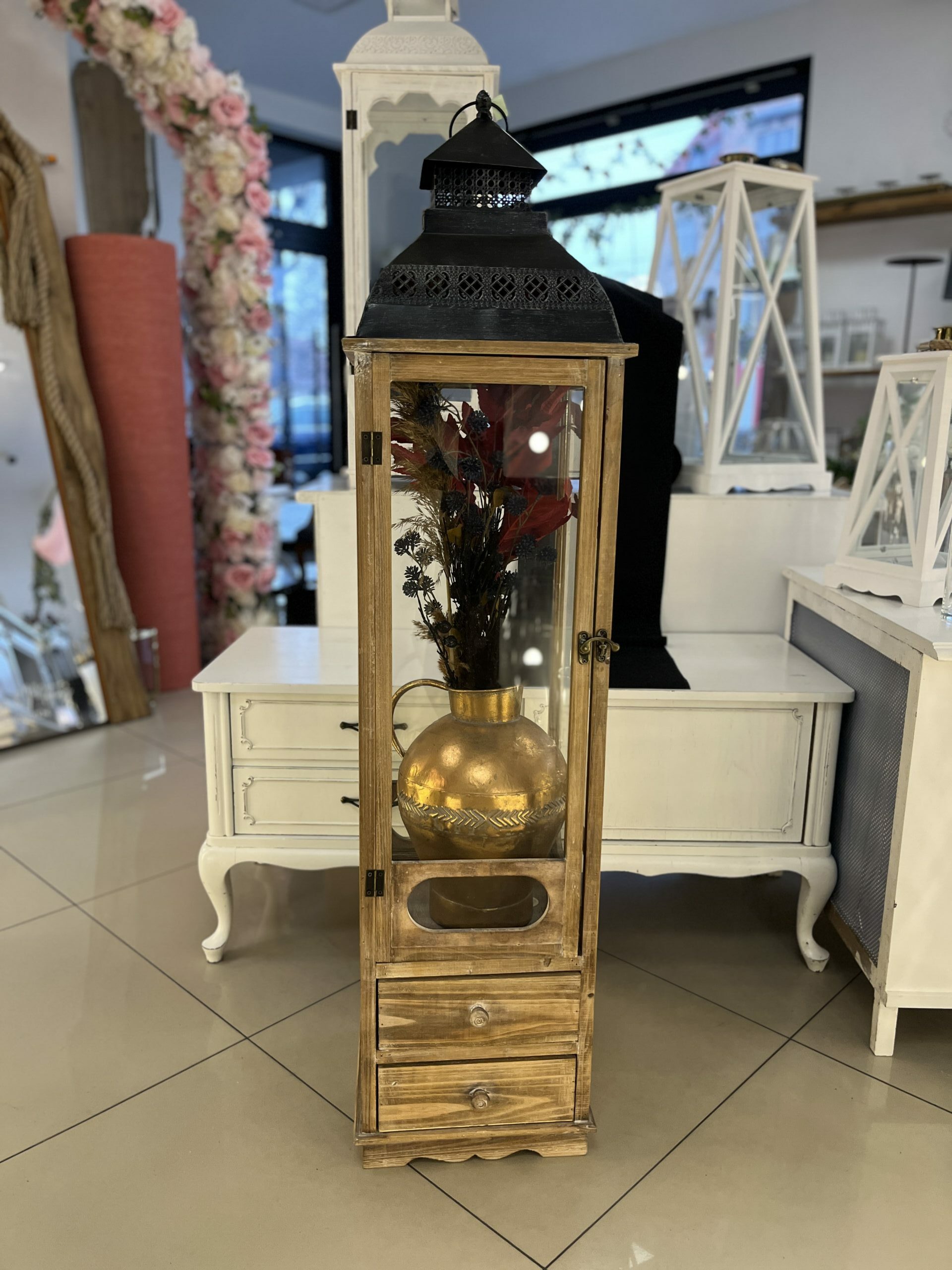 Drewniana latarnia ozdobna. Idealna do stylu boho i rustykalnego na ślub i wesele. Może stanowić piękną ozdobę – a nie być jedynie latarnią. Wszystko zależy od Twojej kreatywności.